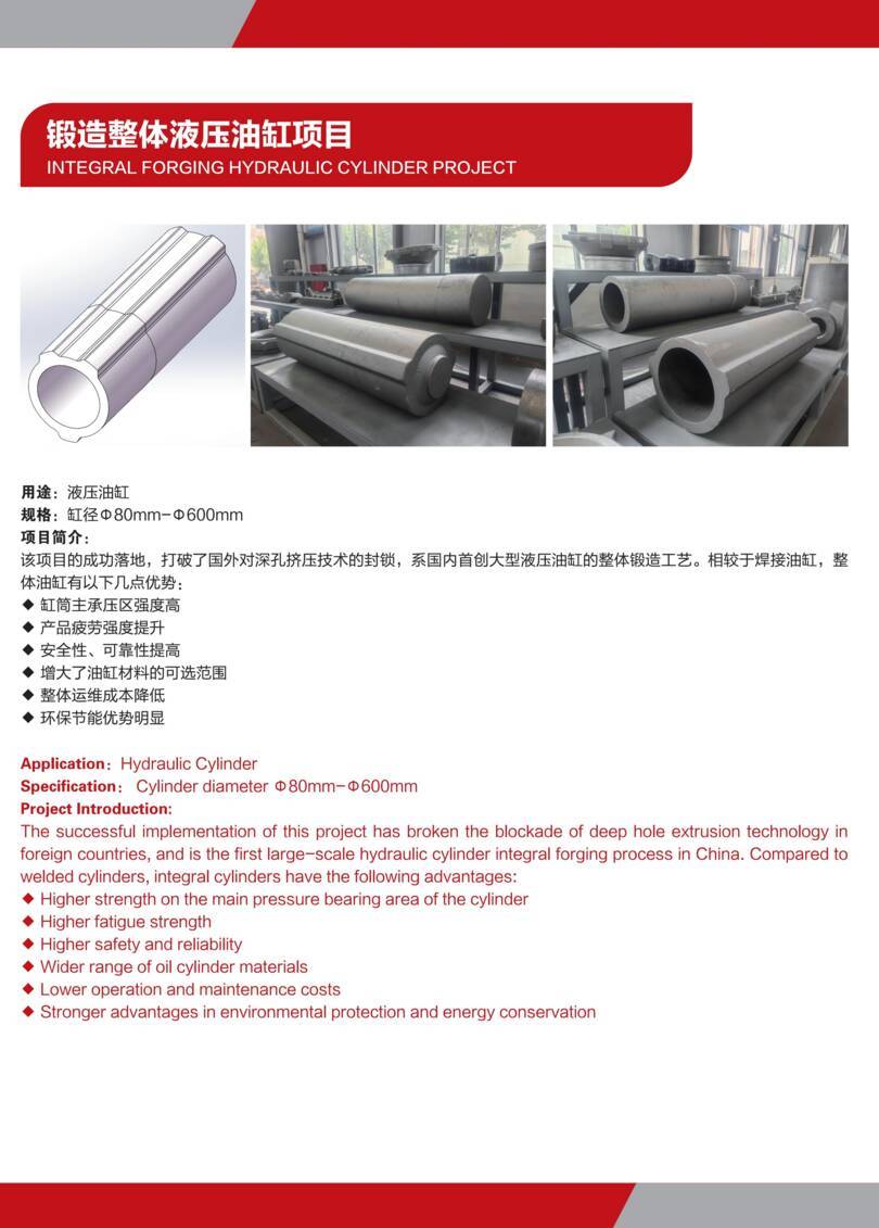 项目依托公司370MN多向模锻压力机生产线,通过整体锻造成型、双冲头分步锻造等技术创新,优化了锻造工艺,提升了成形精度和产品质量,实现了φ80-φ600规格缸筒国产化,产品主要技术指标达到国际先进水平,满足矿山设备对高强度、长寿命核心部件的需求,推动液压支架等装备可靠性提升。